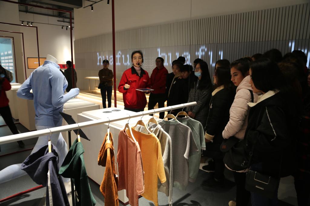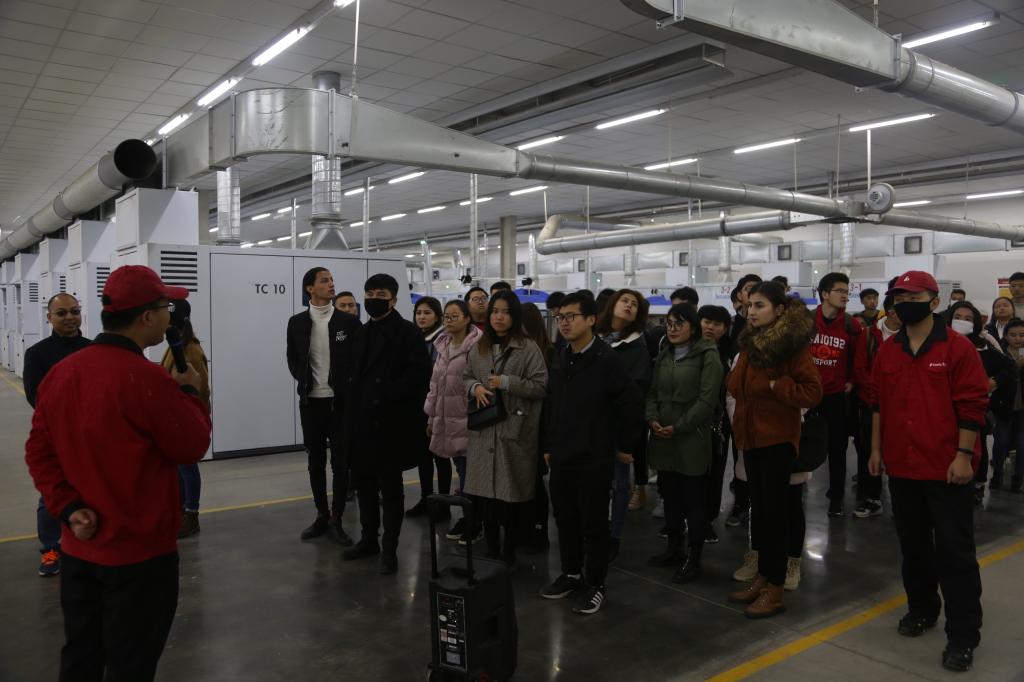 全体师生一行参观了华孚色纺X4、X9厂、展览厅、综合办公大楼,听取了华孚色纺部门经理黄克华和设备总监苗峥嵘关于纺纱纺线、色纺加工、设备作业等方面的详细介绍,进一步了解员工工作环境、学习环境和朱古力av。