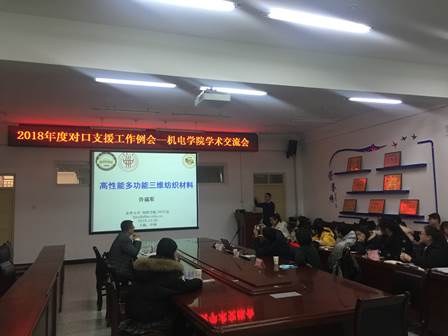 12月20日下午,2018年度对口支援例会—机电院学术交流会在工科楼229室举行。东华大学纺织学院副院长、教授徐广标,东华大学曾泳春教授,东华大学许福军教授,以及学院领导,相关专业教师和学生参加交流会。会议由学院副院长、教授候书林主持。