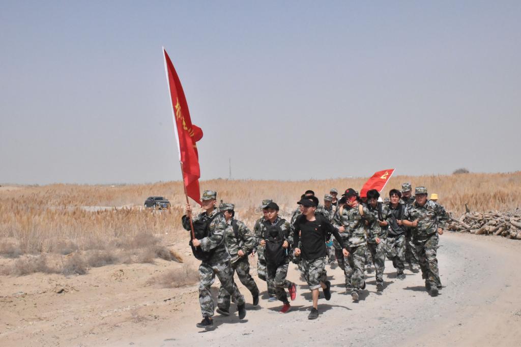 本次重走老兵路单程共计26公里,经过六个小时的艰难跋涉,大家到达了目的地红色影视基地。在参观影视基地之后,所有人员无不感叹前辈们的艰苦卓绝,带着对沙海老兵的敬意,喊着“做机电人,铸机电魂”的响亮口号,全体成员整装返程。一路上大家相互鼓励,团结融洽的氛围与沿途风景相互印染,很多路人对师生党员赞叹不已,甚至有人停下车辆、摇下车窗为塔大点赞。