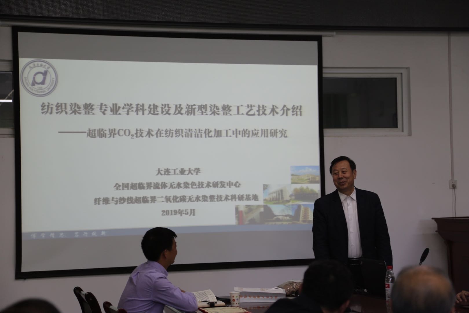 郑来久教授从我校纺织工程专业建设现状出发,结合南疆纺织生产需求,讲述了纺织学科的重要性。以大连工业大学博士学位授权点纺织科学与工程的建设为案例,着重讲解了学科发展与建设的重要内容。郑教授立足南疆纺织产业清洁化生产,讲解了超临界CO2脱胶和染色等新型工艺技术,对纺织企业清洁化生产起到至关重要的作用。