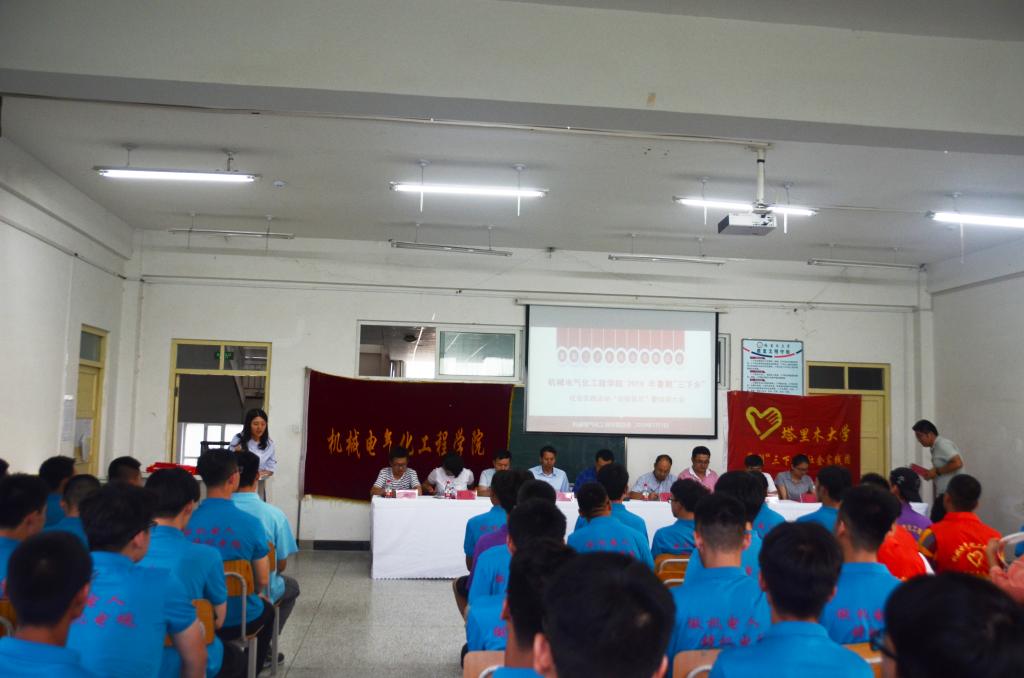 学院领导为各团队授旗。三名团队代表进行交流发言,分享了各自团队的准备情况和实践计划。张宏副院长分享了他在基层的工作的经历,希望同学们要以实际行动践行志愿者精神,展现塔大学子的责任与担当!