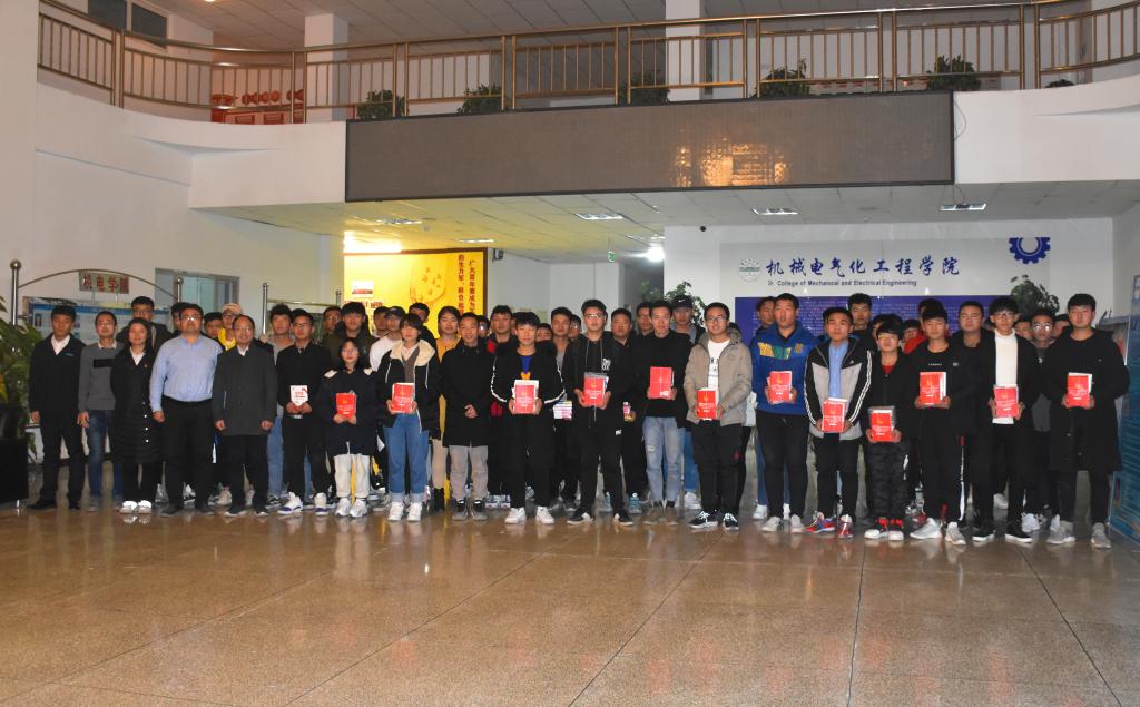 为用心、用情做好人才培养工作,使大学生养成良好的阅读习惯,12月6日,学院举办“书香机电”授书仪式。学院党委副书记胡松林、辅导员代表及各班级代表参加。