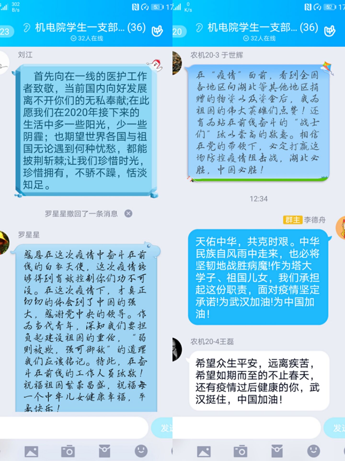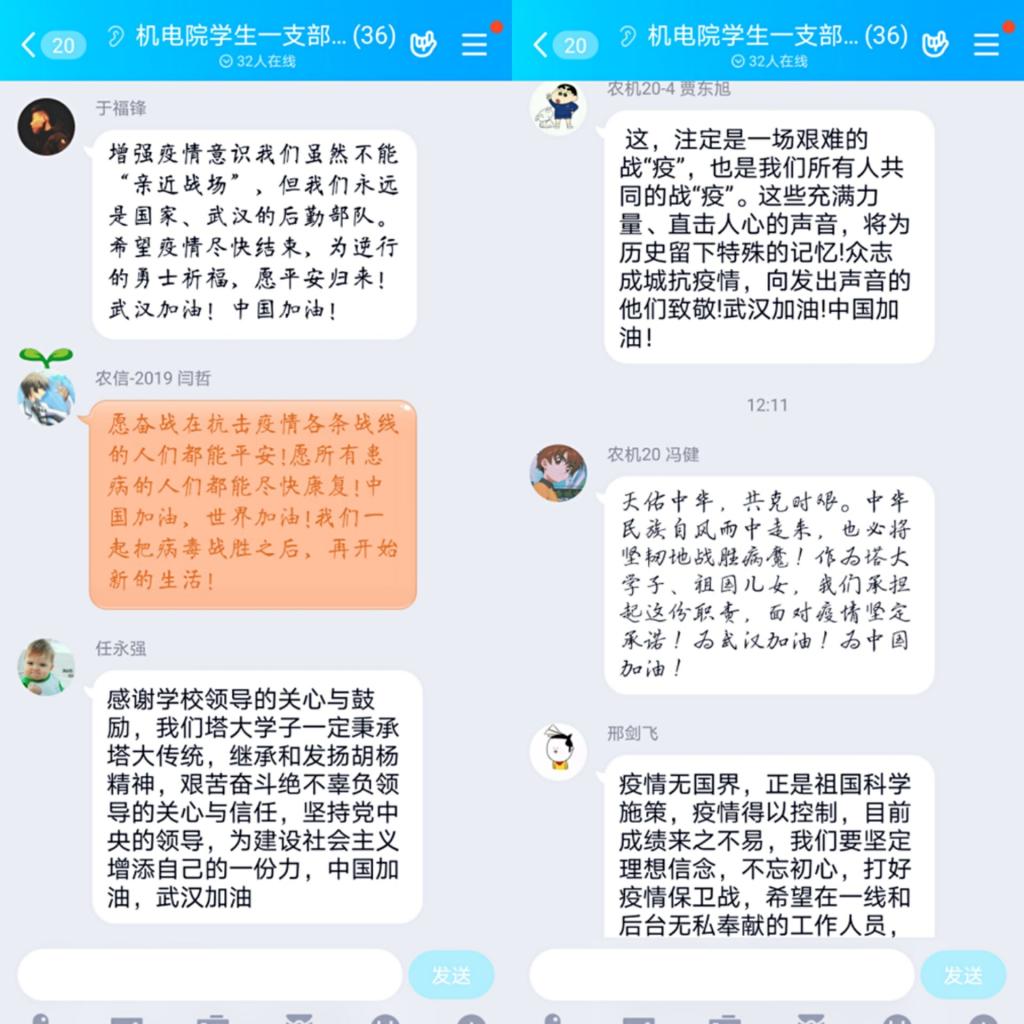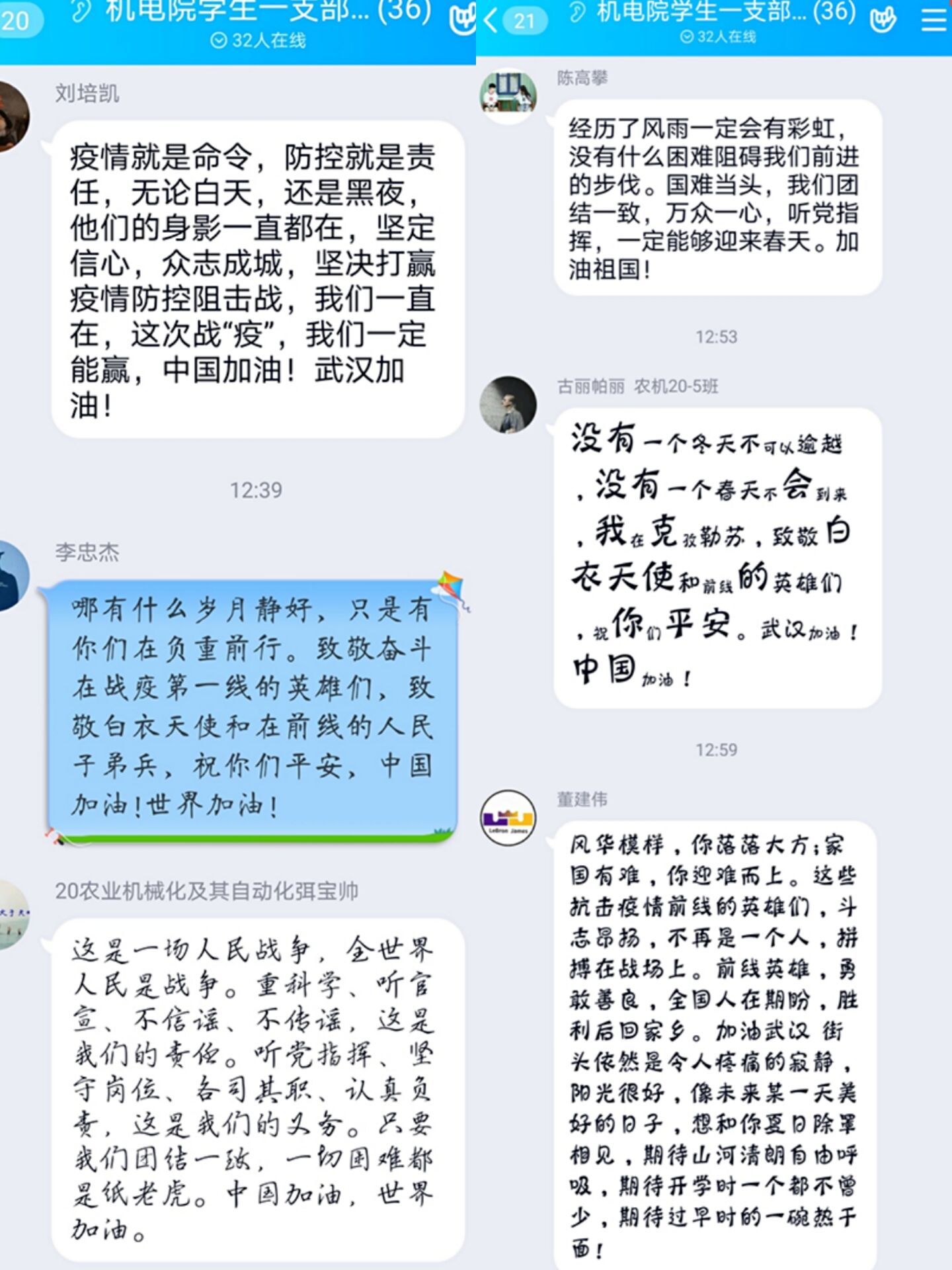 最后,张哲总结表示,学生党员要主动作为,发挥党员先锋模范,以实际行动践行“一个支部就是一座堡垒,一名党员就是一面旗帜”的精神,以实际行动传承和发扬“胡杨精神”,在党的带领下为取得疫情防控攻坚战的最终胜利而奋斗。