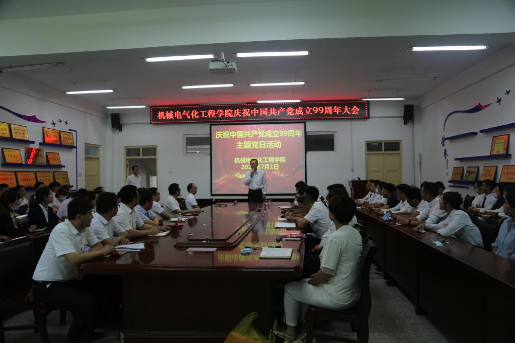 校党委常委、组织部部长马智群出席了主题党日活动并指出,在学校党委的领导下,学校共同打赢了抗疫阻击战,尤其返校复课取得圆满成功,为党的生日送上一份塔大胡杨人的祝福;在推进学校壮大工科发展,用农业武器推进南疆农业信息化的发展;作为联系学院的校领导,他也将竭诚为机电新工科发展做好后勤保障工作,与机电全体生一道,把学院办好办强、推进兵团特点、南疆特色高水平大学贡献力量。