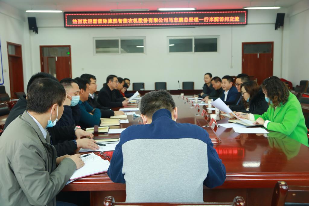 2月23日,新疆钵施然智能农机股份有限公司沙雅分公司马志鹏总经理一行6人来院访问交流。在工科楼229会议室召开座谈会,学院党委书记王红飙、院长王旭峰,副院长张宏、张有强及各系(中心)、学生工作办公室主要负责人参加了座谈交流,会议由王旭峰主持。