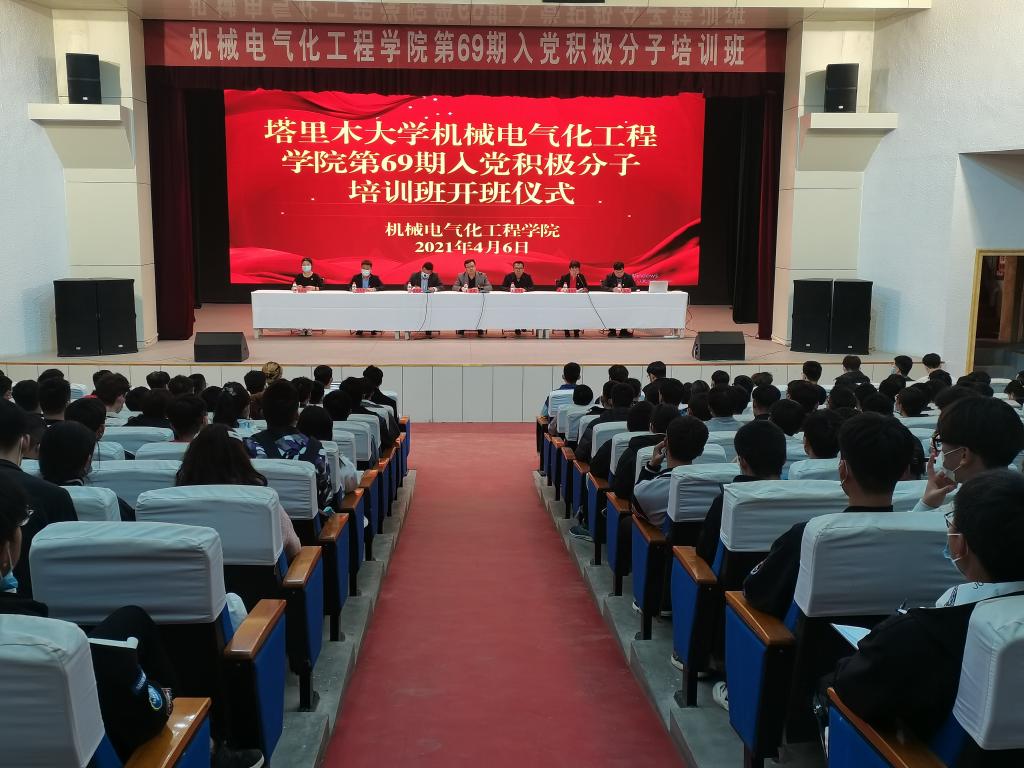 4月6日,学院在大学生活动中心举办第69期入党积极分子培训班开班仪式,机电院副院长张宏、农业工程党总支书记范修文、机械工程系党总支书记廖结安、农业工程系、机械工程系、电气工程系学生党支部书记张哲、孙天洋、鲁宁宁出席开班仪式,学院203名积极分子参加开班仪式,仪式由党建办公室副主任董翻过主持。
