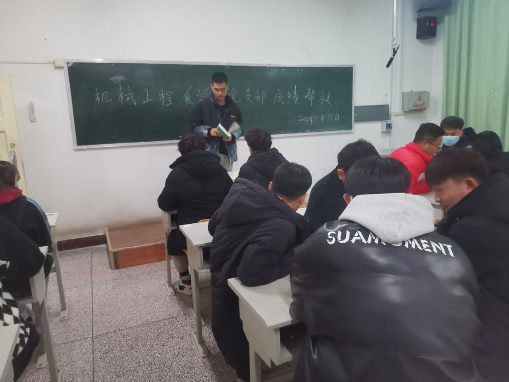 为使学业困难的学生能够补齐课业,提高成绩,在考试来临之际,尽早的发现问题、分析问题、解决问题。11月13日晚上,机械工程系学生党支部开展“朋辈帮扶,携手共进”主题课业帮扶活动。活动在2号楼107、108教室进行。