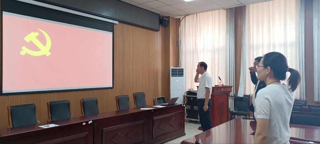 整个主题党日活动,在高亢的国歌声中拉开序幕。全体党员在学院副院长张有强的带领下重温入党誓词。