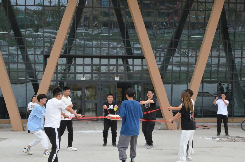 全体同志到东扩区图书楼一楼大厅参与联谊活动素质拓展环节,有“乒乓接龙”“乾坤大挪移”“同心击鼓”“过砖桥”“套圈取物”5个环节。大家分为4个小组,各组成员都相互配合,相互帮助,不落下一个队员,坚持到底。