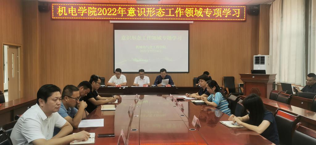 组织全院教职工开展意识形态、统一战线领域的专题学习。学院党委书记王旭峰,党委副书记,院长张宏、党委副书记李勇,副院长徐志佳、张辉和学院全体教职工参加学习。专题学习在学院D108会议室进行。