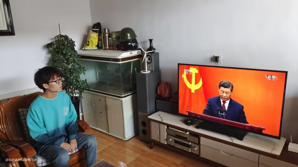 机械工程教师胡灿在阿拉尔市新苑名豪5-6区41号楼1-203室观看中国共产党第二十届中央政治局常委同中外记者见面会。