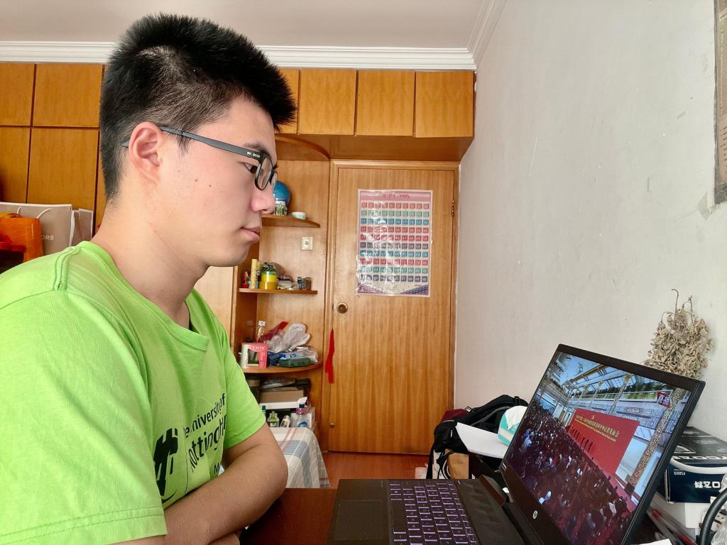 车辆2019级1班孔令轩在河北省唐山市观看中央政治局常委同中外记者见面会