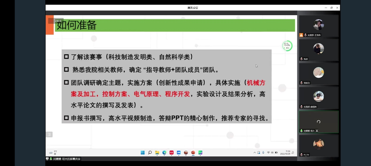童荣介绍了参加大学生科技竞赛申请创新创业学分的流程和认定方式,让同学们对创新创业学分的认定标准更加了解。