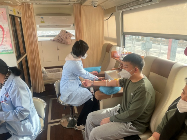 10分钟后,马少辉和6名第一批志愿者集结完毕,迅速来到师市血站,经检测,仅有2人符合献血条件。情况危机,刻不容缓,学院再次紧急招募了4名今年退役的大学生志愿者,火速赶到血站,有序开展献血,确保了治疗用血第一时间到达病房。