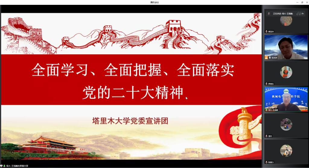 会上,王旭峰从深刻领会党的二十大主题和主要成果、过去五年的工作和新时代十年的伟大变革、马克思主义中国化时代化、中国式现代化、全面建设社会主义现代化国家的目标任务、坚持党的全面领导和全面从严治党等方面展开全面阐释和系统讲解。宣讲报告主题鲜明、重点突出、图文并茂、内容详实,既有深刻的思想引领性,又有较强的指导实践性。与会人员认真聆听,仔细记录,深受教育和启发。