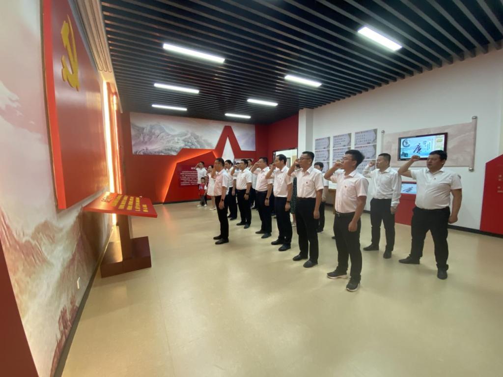学院党委书记王旭峰带领全体党员干部面向党旗庄严宣誓,重温入党誓词,增强党的意识,牢记党的宗旨,守住入党初心,永葆党员本色。
