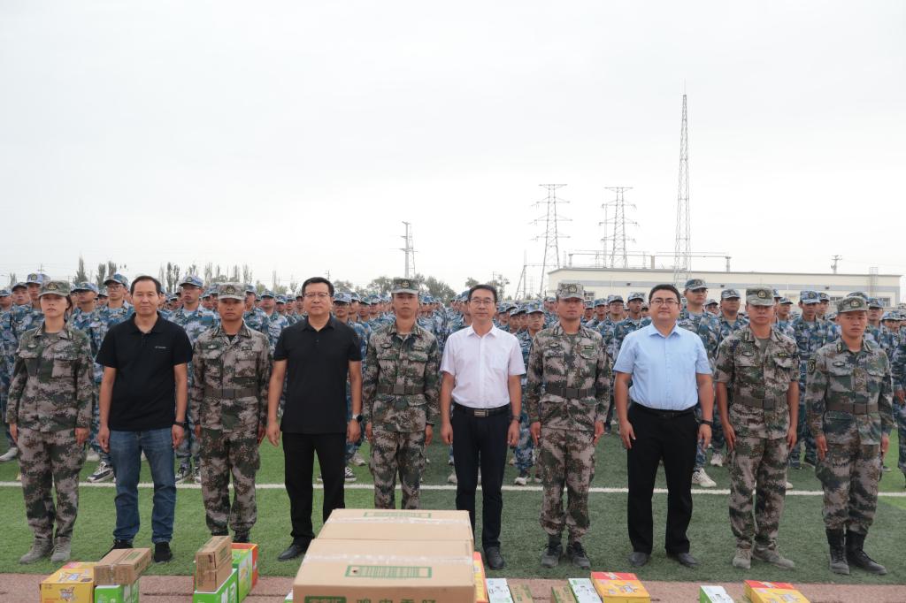 一声声口号在训练场上回响,展现了机电学子蓬勃向上的精神面貌。王旭峰代表学院全体师生向承训教官及指导员的工作表示感谢,向全体参训的同学们表示亲切的问候,并对同学们高昂的军训热情和端正的训练态度表示高度的肯定和赞扬。他表示,军训既是大学教育的必修课,同时也是磨砺意志、增强体魄的关键一课。随后,学院党委书记王旭峰代表学院为承训教官和参训学生分发了牛奶等慰问品,给大家带来学院的问候与温暖。