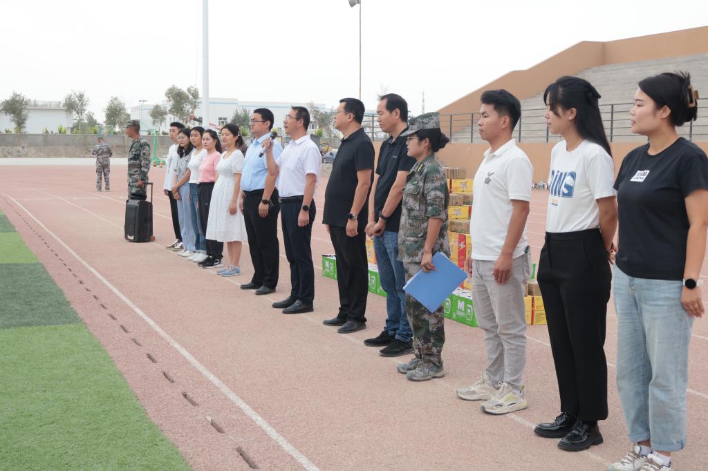 为鼓励2022级学生坚持完成军训任务,8月28日上午,学院党委书记王旭峰、院长张宏、党委副书记李勇、副院长张有强和学院全体辅导员以及各参训班主任来到东扩区一期训练场地,代表学院看望军训学生、带训教官及一线保障队伍。