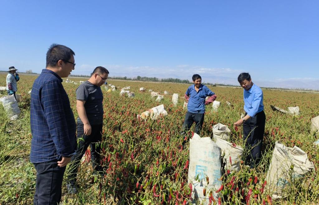 在田间地头,科技特派员围绕团场各连队种植的辣椒、小麦、番茄、玉米、蟠桃等农作物和特色林果进行现场技术指导服务,与种植户深入探讨农作物种植技术,向种植户现场讲解农作物播种、灌溉、施肥、采摘、加工、干燥等有关知识,了解特色林果种植情况,了解相关科技需求,有针对性开展技术指导。