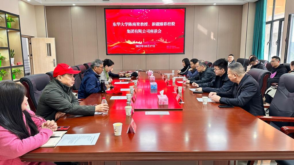 报告会后陈南梁教授一行到新校区一期D323参加座谈会,参会的有新疆臻彩纺织有限公司董事长朱星宇,纺织工程系银龄教师和纺织工程系全体教师。陈南梁教授与各位进行了深入的交流,就各自领域的发展、技术研究、人才培养等方面进行了激烈的讨论。