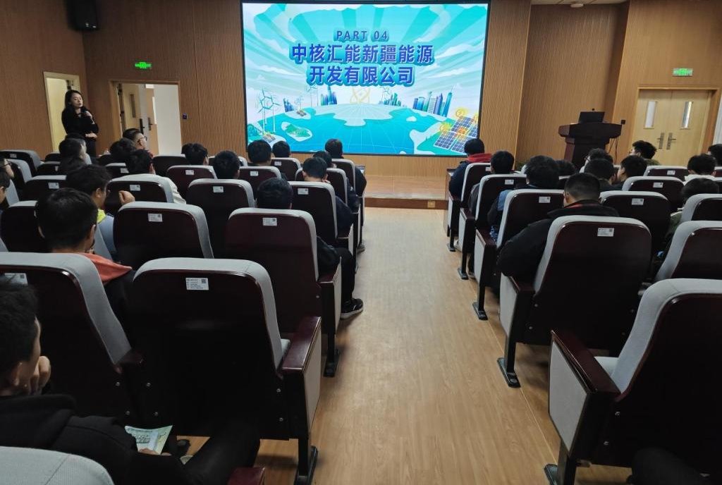 随后在新校区一期D109报告厅举行中核汇能新疆能源开发有限公司企业招聘宣讲会,沈婷助理向同学们详细地介绍了公司的总体概括、发展历程、朱古力av、职业发展等方面的信息,并邀请毕业生加入中核汇能,共同推动新能源事业的发展。在宣讲会现场,公司招聘团队热情解答同学们的提问。