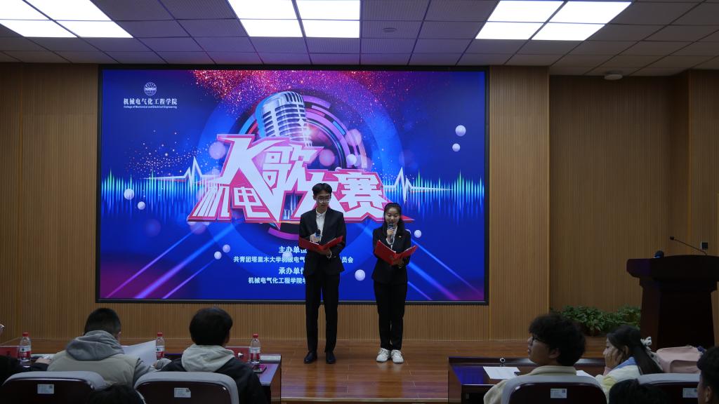 于新校区办公楼D109开展“圆音乐梦想,炫机电之光”K歌大赛。