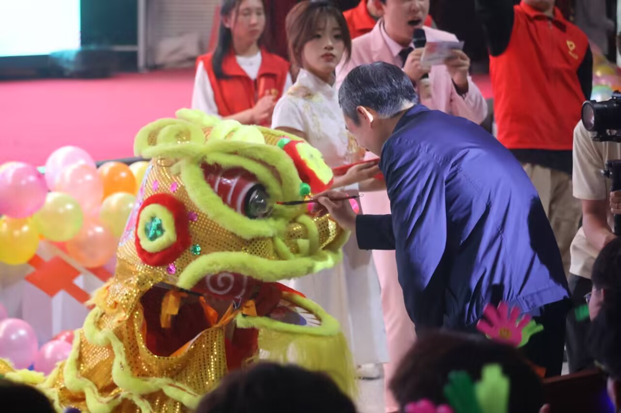 在暖场的“醒狮”环节中,汤校长为舞狮点睛,赋予狮子生命力和活力。他手持朱砂笔,一点左眼,灵气满身,祝愿机电学院蓬勃发展,二点右眼,志在乾坤,祝愿塔大学子再创辉煌。现场的氛围被推向了高潮,传来阵阵热烈的掌声。