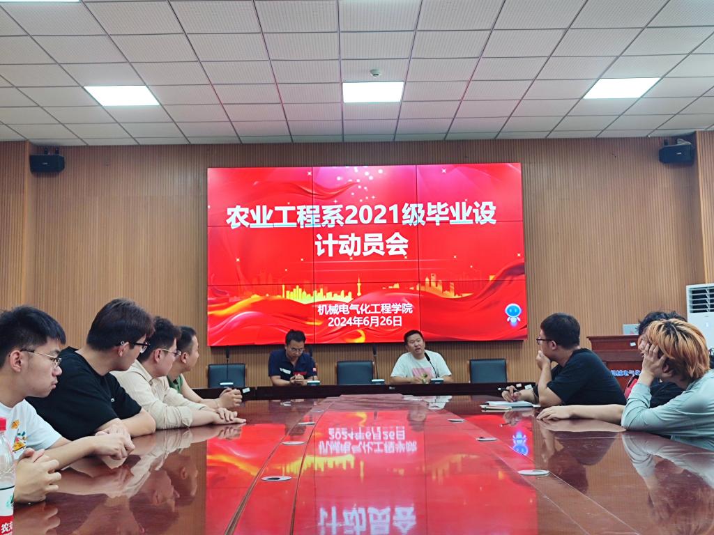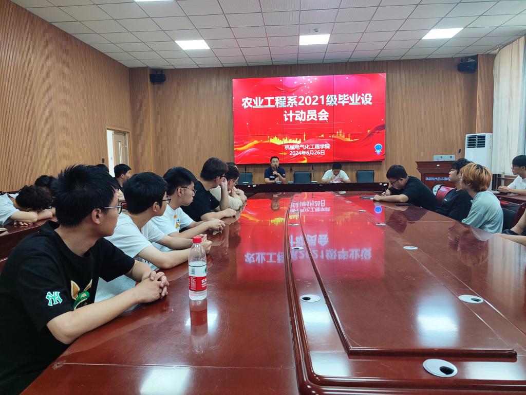 为进一步落实人才培养目标,不断提高农业工程系毕业论文质量,按照学院毕业设计工作安排部署,6月26日农业工程系在新校区一期机电楼D108召开2025届本科毕业生毕业论文(设计)工作动员大会,农业工程系书记范修文、主任贺小伟、副主任刘扬、毕业论文指导教师和2025届农业工程系全体毕业生参加了此次动员会。会议由郭展宏主持。