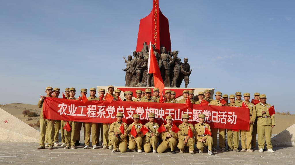 为进一步弘扬沙海老兵精神,继承和发扬革命先烈遗志,增强爱党爱国情怀,更好地发挥党员先锋模范作用。10月27日上午,农业工程系党总支开展了“党旗映天山”系列活动,全体党员共同参加,缅怀革命先烈,体悟革命精神。