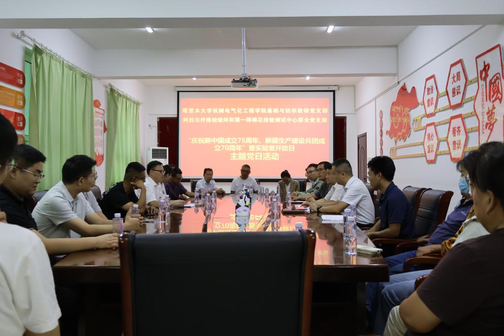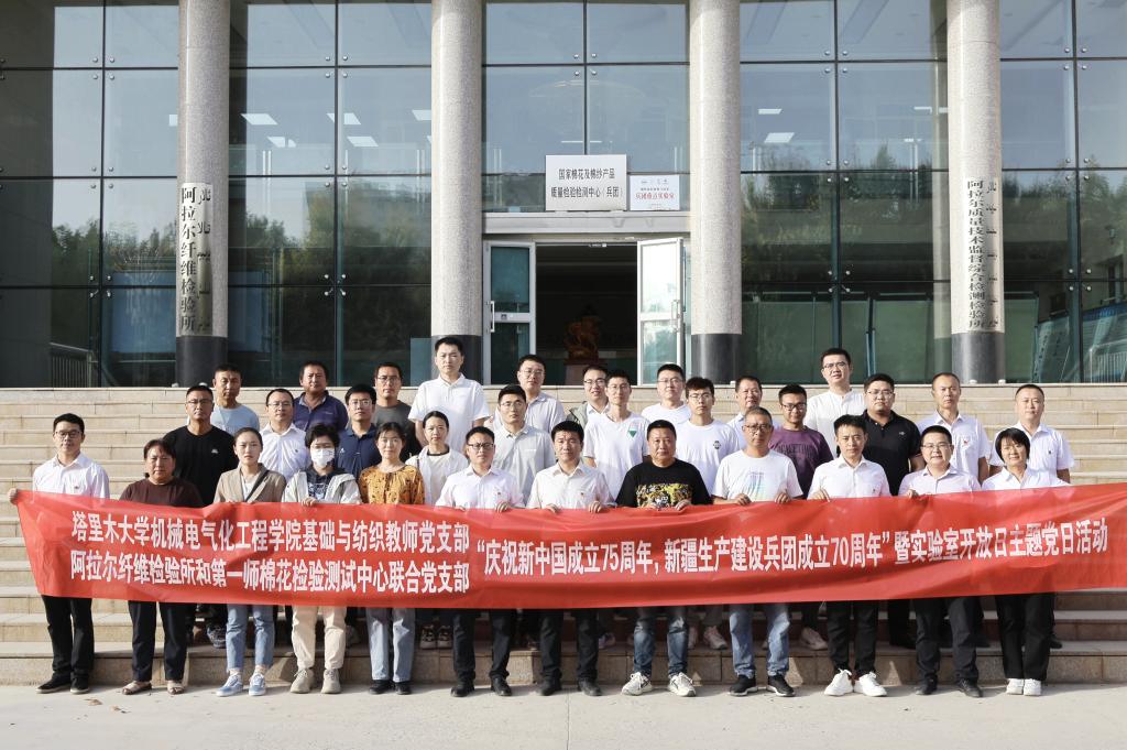 为庆祝中华人民共和国成立75周年及新疆生产建设兵团成立70周年。9月25日,学院基础与纺织教师党支部书记孔德国等一行人赴阿拉尔纤维检验所和第一师棉花检验测试中心举办了一场别开生面的主题党日暨实验室开放日活动。此次活动不仅增进了产学研的深度融合,也为推动一师棉花、纺织产业的高质量发展注入了新的活力。