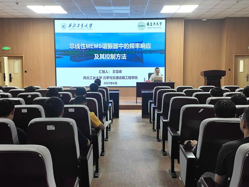 6月13日,学院邀请西北工业大学王雪峰副教授来院开展学术交流,为师生作题为《非线性MEMS谐振器中的频率响应及其控制方法》的学术报告。报告会由学院党委副书记、院长张有强主持,在新校区D109报告厅举行,学院师生代表100余人听取学术报告。