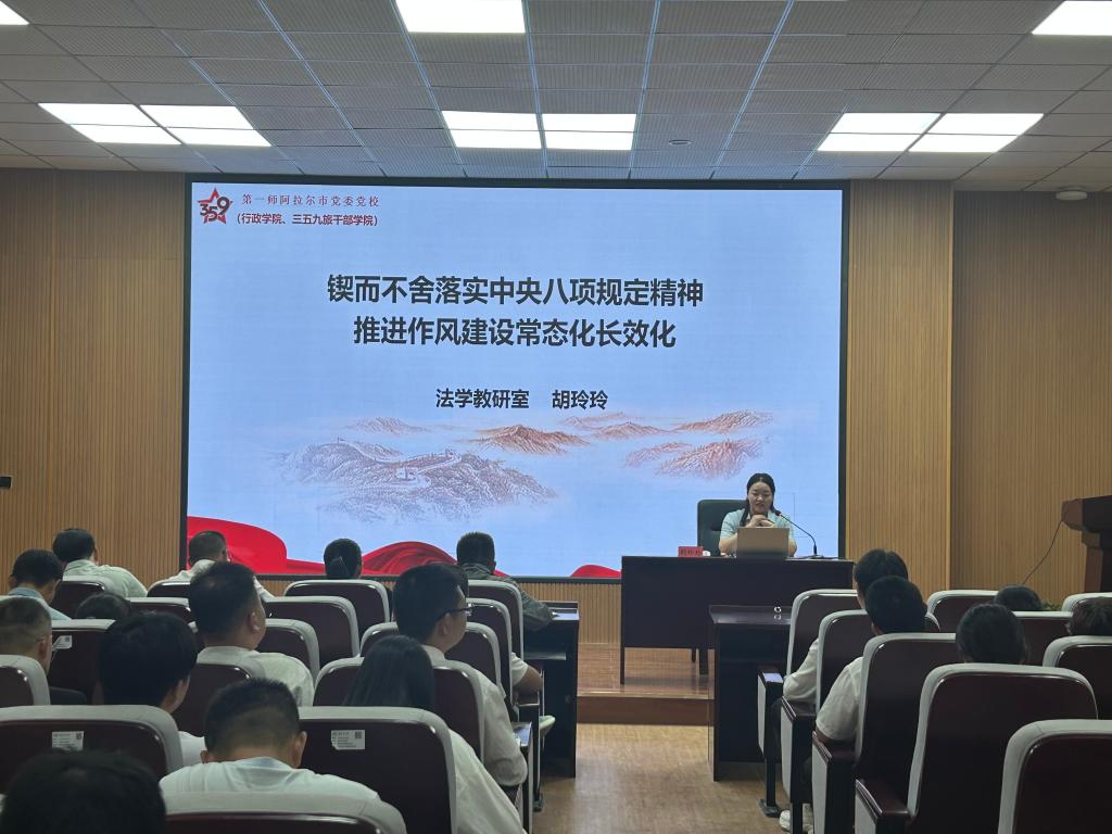 党委邀请第一师阿拉尔市党委党校(行政学院)法学教研室主任胡玲玲教授,为全院师生党员讲授专题党课。学院全体师生党员参加培训,此次培训通过理论阐释与案例警示双轨并进,推动纪律意识内化于心、外化于行,深化党员同志对新时代党的作风建设的政治自觉与行动担当。