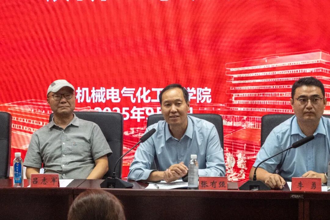 在新校区一期D109召开了2025级新生家长座谈会。 学院院长张有强、党委副书记李勇、副院长吕志军、学办主任鲁宁宁、团委负责人王玉、2025级新生班班主任及160余位新生家长代表参加此次座谈会。会议由李勇主持。