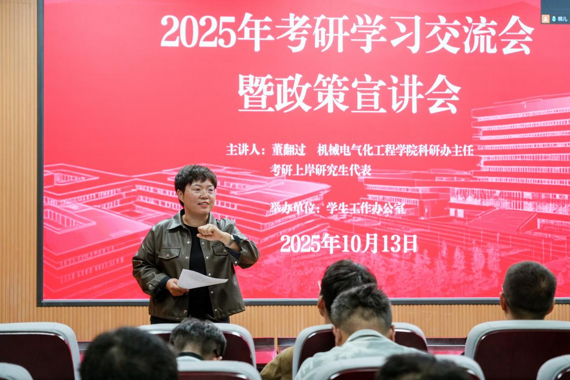 于新校区一期D109会议室举办了2025年考研学习交流会暨政策宣讲会。学院科研办主任董翻过、辅导员任永强、考研上岸的研究生代表及有考研意向的学生参加了此次会议。