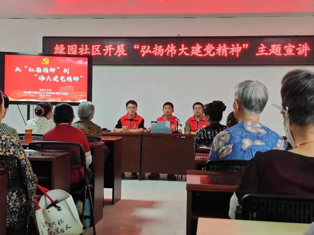 “赓续薪火践初心,五育并举赴新程”实践队走进阿拉尔市绿园社区,开展“弘扬伟大建党精神”主题宣讲活动,为社区居民带来了一场深刻且生动的精神洗礼,让伟大建党精神在基层深深扎根。