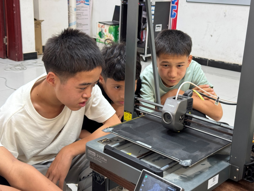 在技术体验环节,实践团成员引导孩子们近距离观察3D打印机的运作,将精密喷嘴比作“会画画的笔尖”,将堆叠打印喻为“积木搭建”,通过讲述3D打印机的工作原理,有效加强孩子们对3D打印技术的理解,激发科学兴趣。当孩子们亲自设计的模型文件导入设备,伴随细微而持续的机械运转声,作品逐渐成形,孩子们在设备旁围聚,眼眸中闪烁着认知边界拓展后的豁亮。