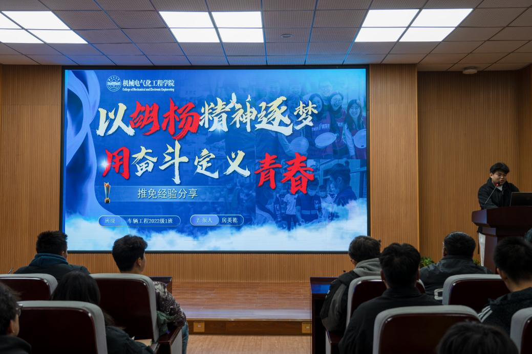 在东扩区一期机电楼D109举办优秀学子经验分享交流会。活动邀请了车辆工程2022级1班的房英乾同学和机械设计2022级3班的秦建宇同学担任主讲嘉宾,百余名同学到场聆听交流。
